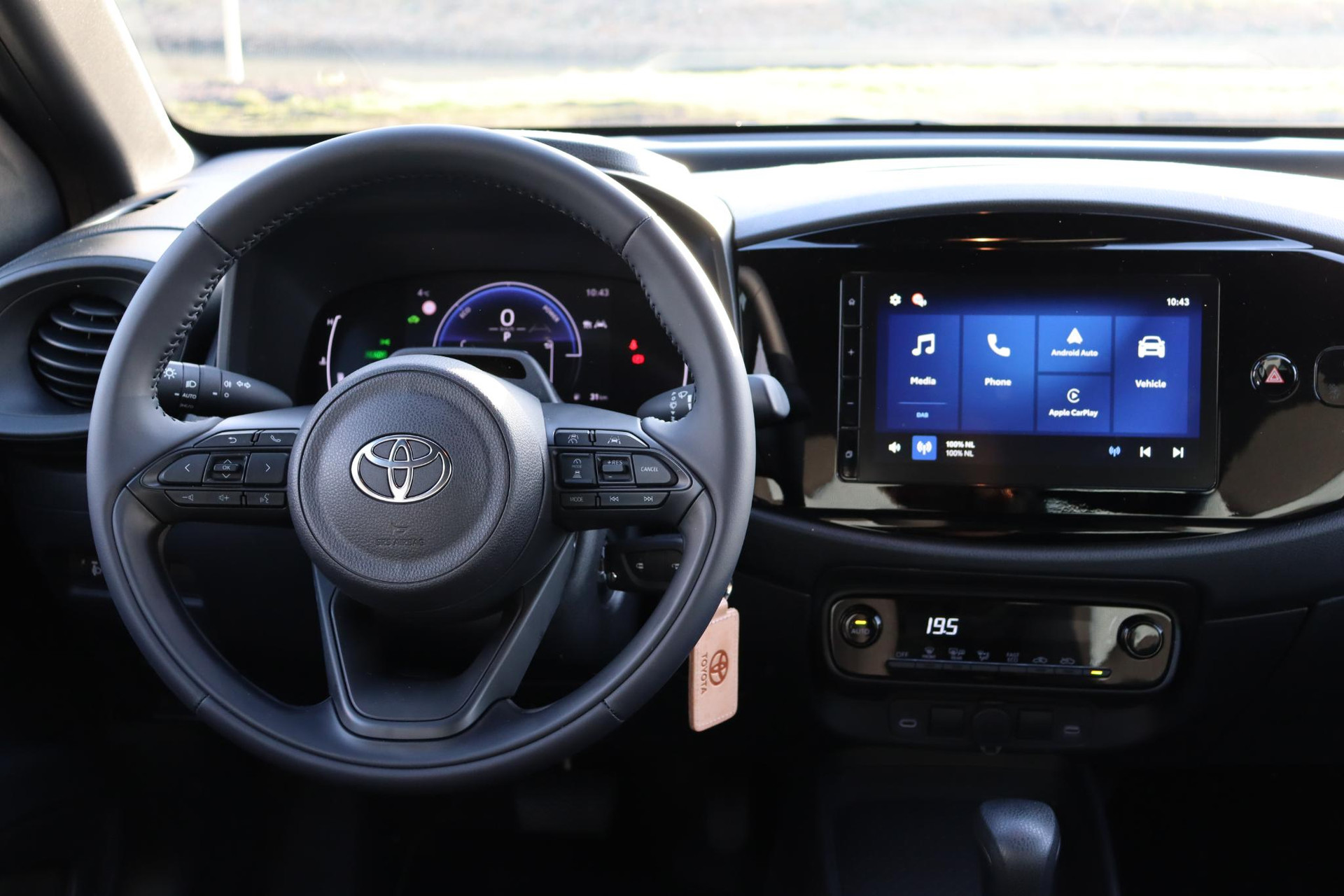 Aygo X Hybride 115 PK Play Green uitvoering. De Aygo met automaat is uitgevoerd met Groene remklauwen, 17 Inch zwarte LM vegen met Allseason banden, Getinte ramen, Draadloos Apple carplay en Android auto, Adaptieve cruise controle, Safety sense, parkeercamera en meer.