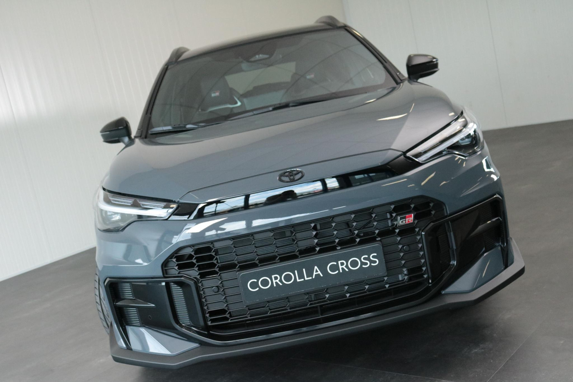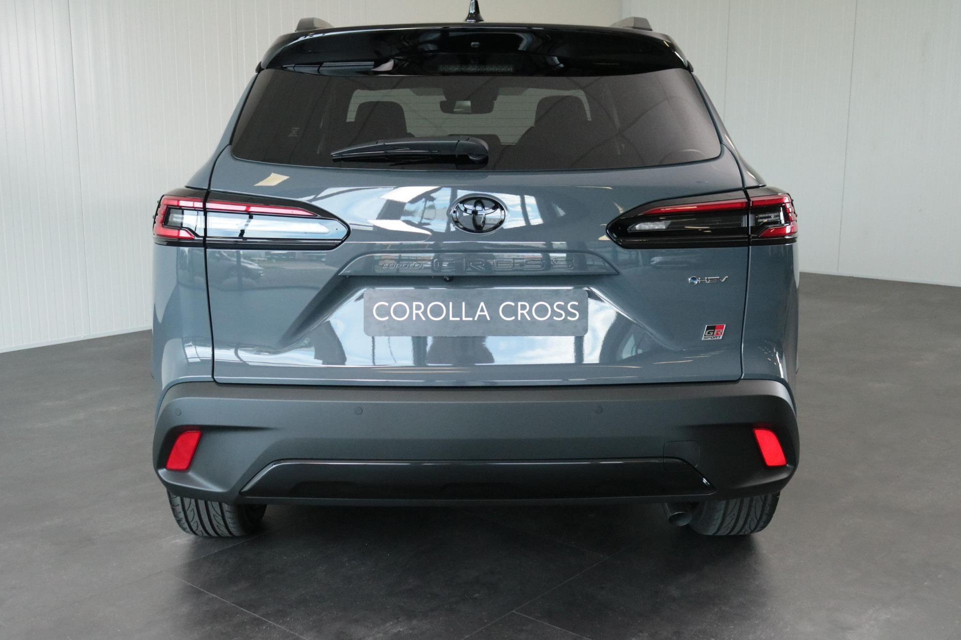 De Toyota Corolla Cross hybrid 200 GR sport in de kleur Storm Grey metallic met zwart dak. Deze Sportieve Corolla Cross is onder andere voorzien van: GR Sport Plus Pack, Blind Spot monitor, JBL audio systeem, Panorama dak, Parkeer sensoren voor en achter, Stoelverwarming, Stuurverwarming, Prachtige 19 inch licht metalen velgen, elektrische achterklep, Keyless entry en nog veel meer!