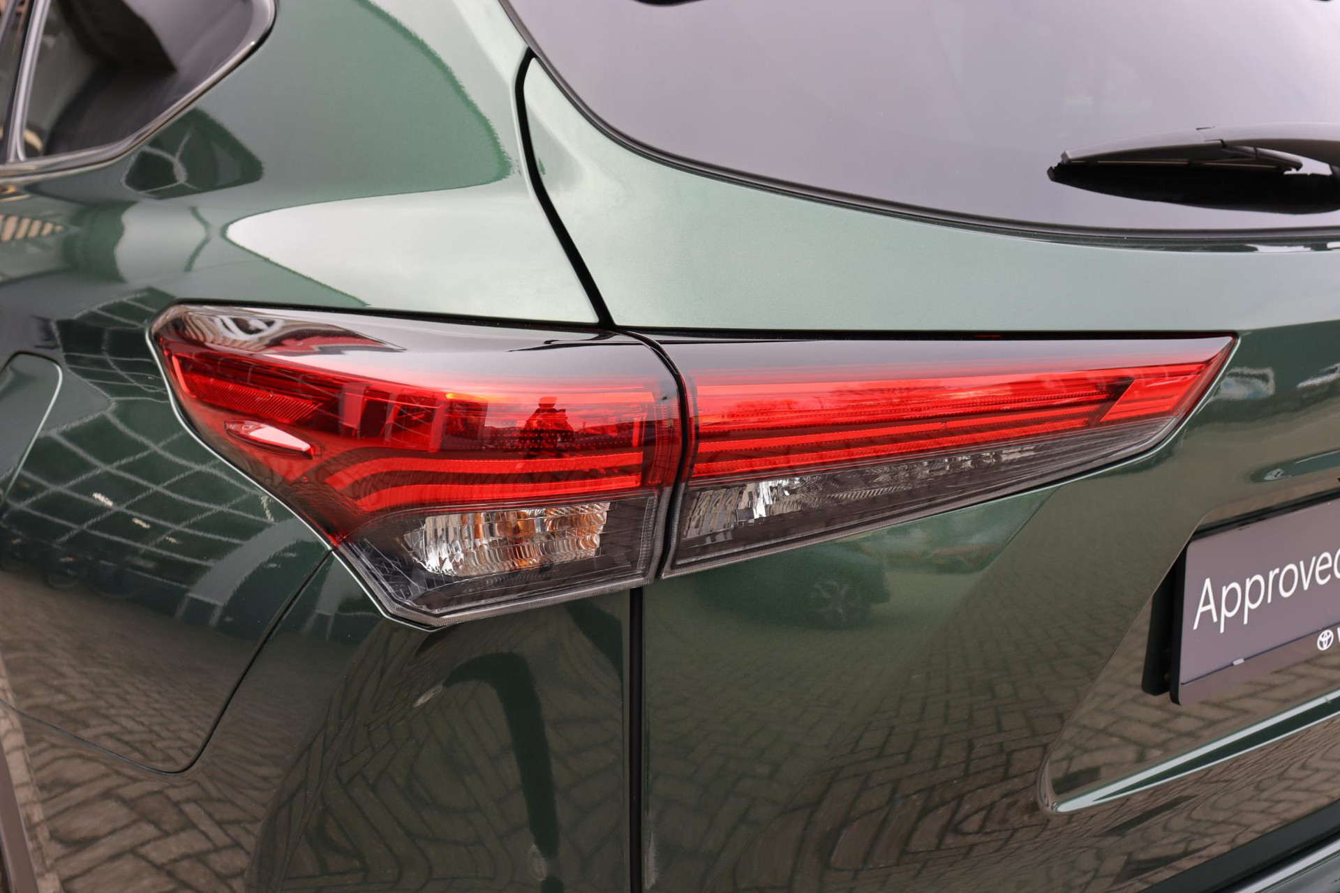 Prachtige mooie uitvoering van de Highlander AWD 7-Perosoons Premium in de kleur Cypress Green metallic i.c.m zwart lederen interieur.